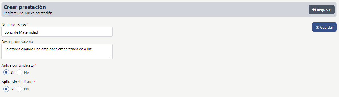 El registro se ha creado, ahora pinche en el botón Regresar: